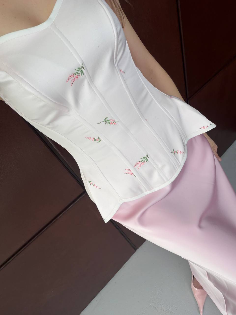 розовый в цветы, молочный в цветы