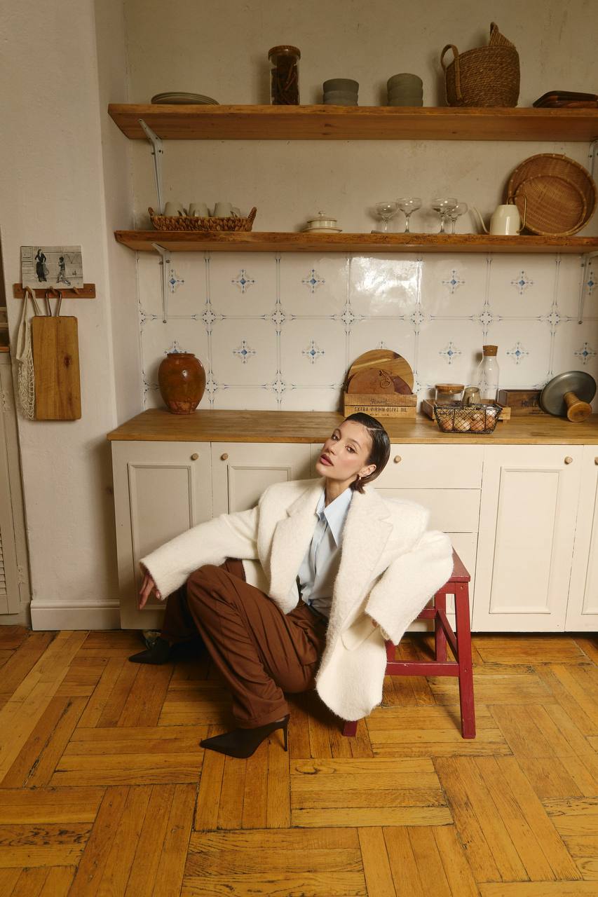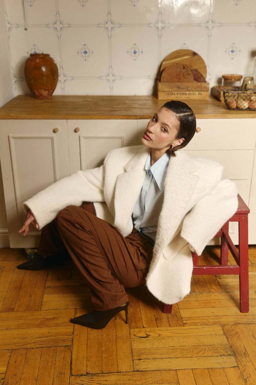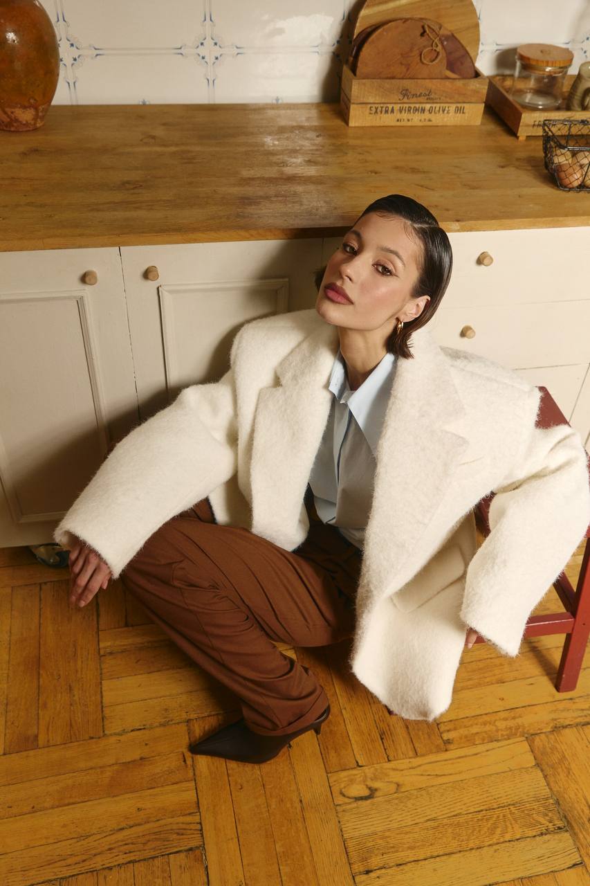 84% полиэстер 13% шерсть 3% эластан Подкл:45% вискоза 55% полиэстер